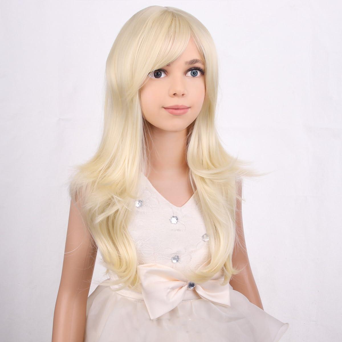 14 Inches Rainbow Wig Short Wavy Pastel Wig with Bangs Multi Color Wigs for Women Girls Heat Resistant Synthetic Cosplay Costume Wigs(Light Blonde)