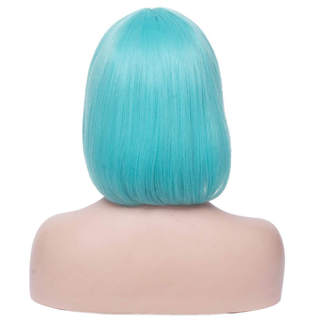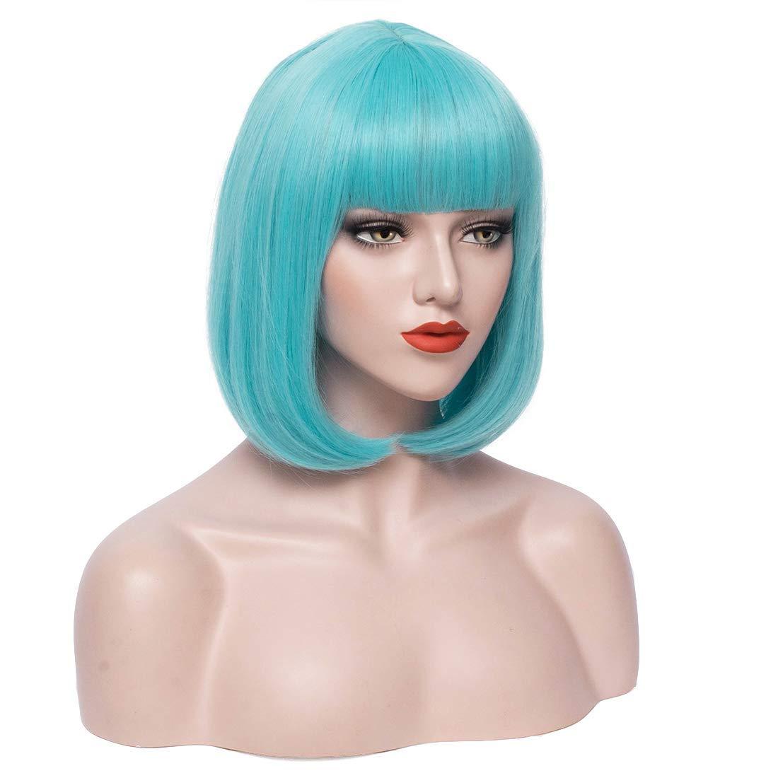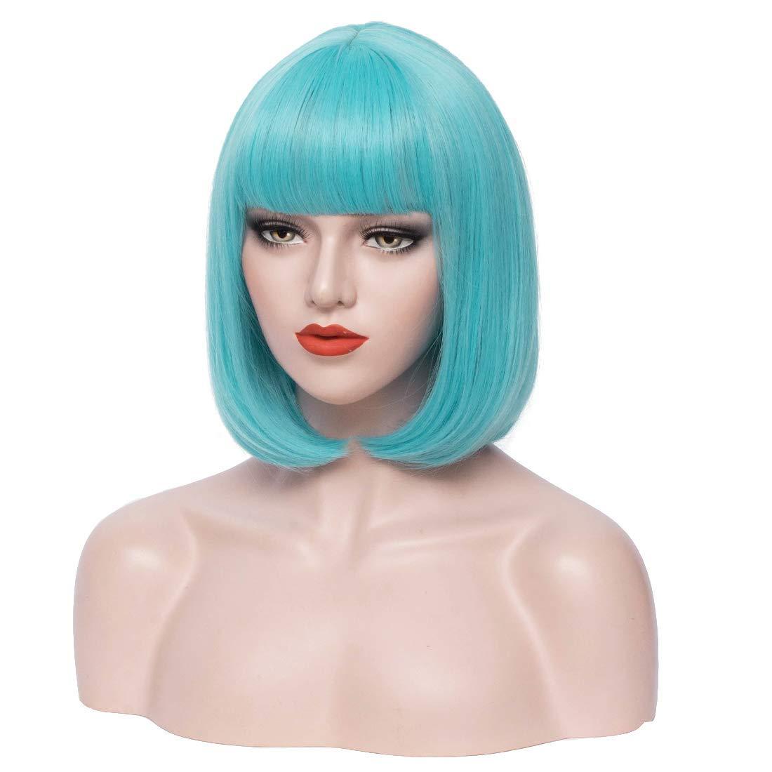 14 Inches Rainbow Wig Short Wavy Pastel Wig with Bangs Multi Color Wigs for Women Girls Heat Resistant Synthetic Cosplay Costume Wigs(Light Blue)