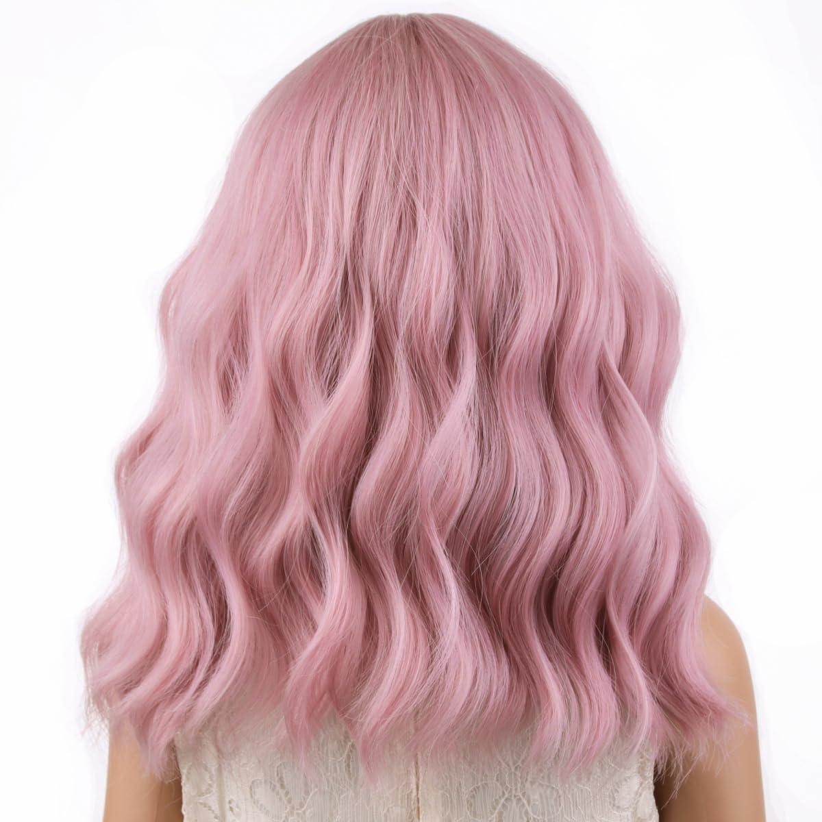 Black Kids Child Wig Shoulder Length Black Wavy Wigs with Bangs for Gilrs Heat Resistant Synthetic Girls Wig Daily Wear Wigs(Mixed Pink)