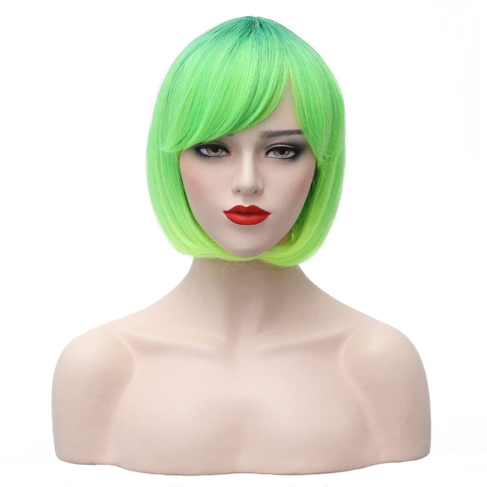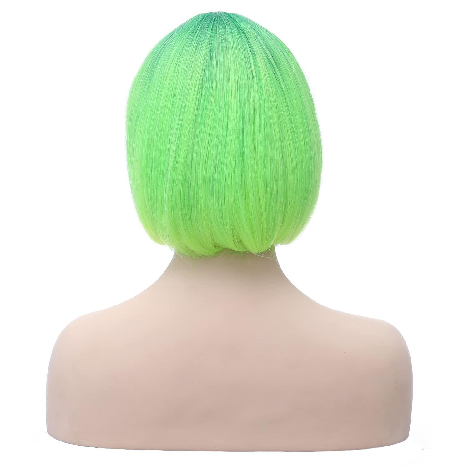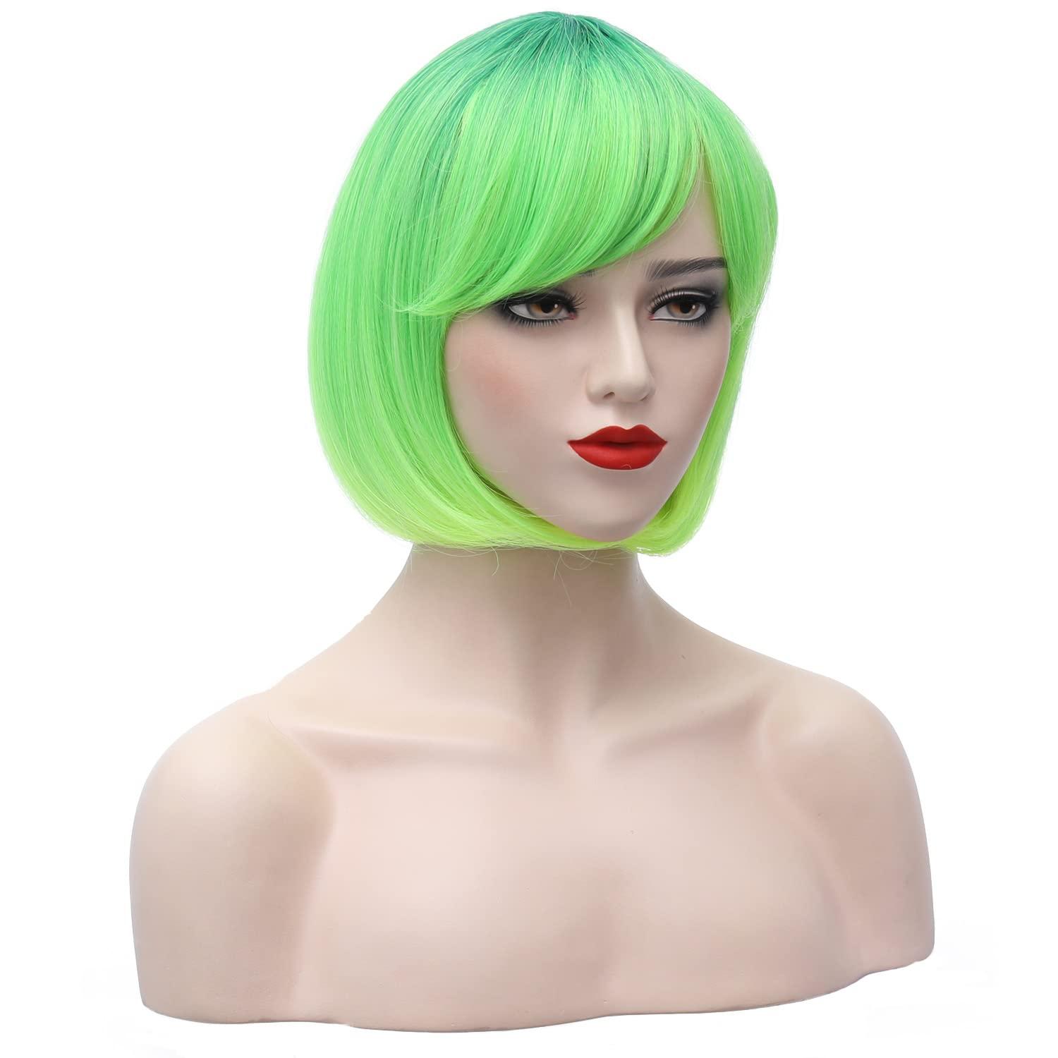 Black White Bob Wig Short Straight Wig with Bangs Two Color Bob Wig for Women and Girls Synthetic Wig (Black White)(Green)