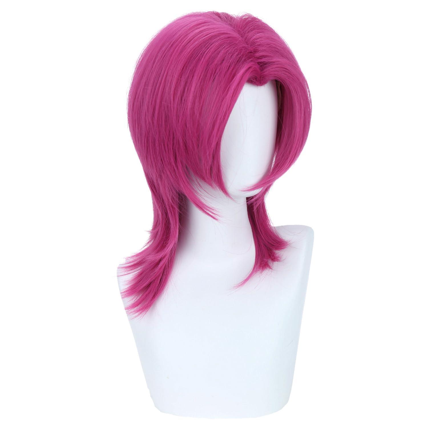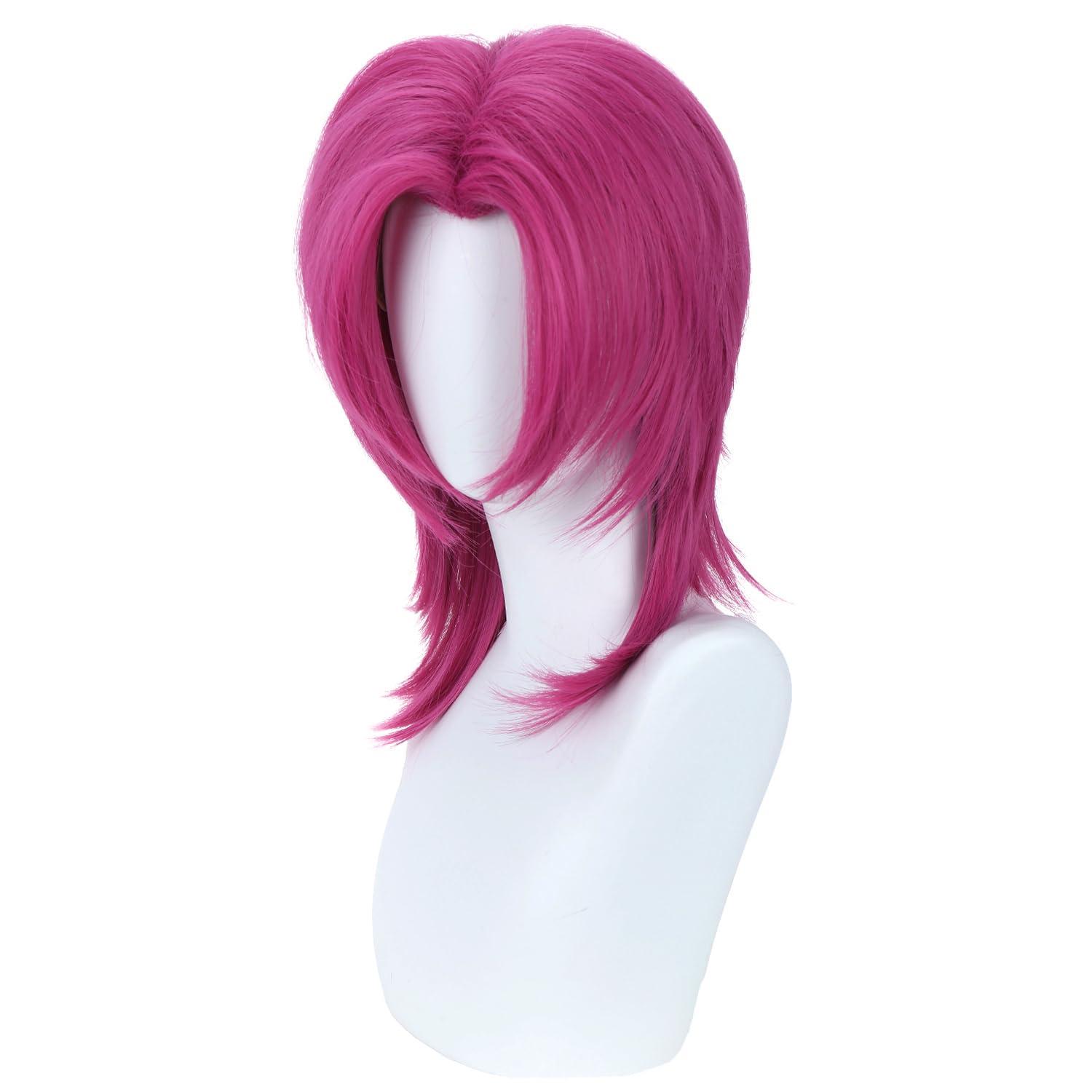 Blonde Mens Wigs Short Straight Layer Wigs for Men Male Blonde Short Wig Natural Synthetic Hair Wig Cosplay Party Costume Wig(Neon Pink)