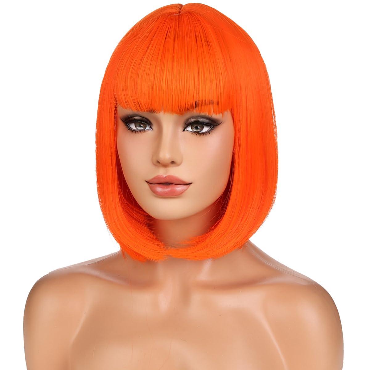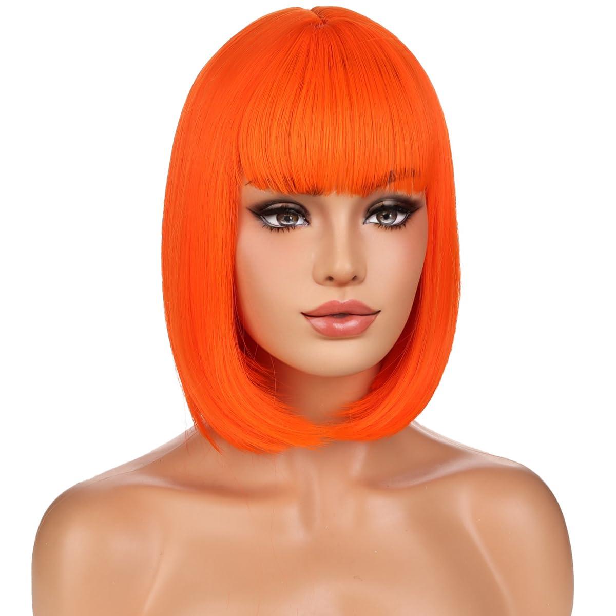 Ginger Bob Wig for Women Short Orange Bob Wig with Bangs Short Straight Synthetic Wigs(Ginger)(Bright Orange)