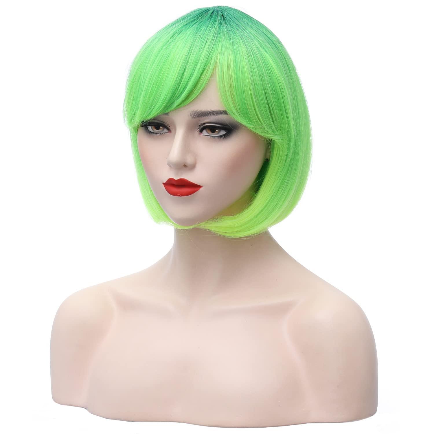 Ginger Bob Wig for Women Short Orange Bob Wig with Bangs Short Straight Synthetic Wigs(Ginger)(Green)