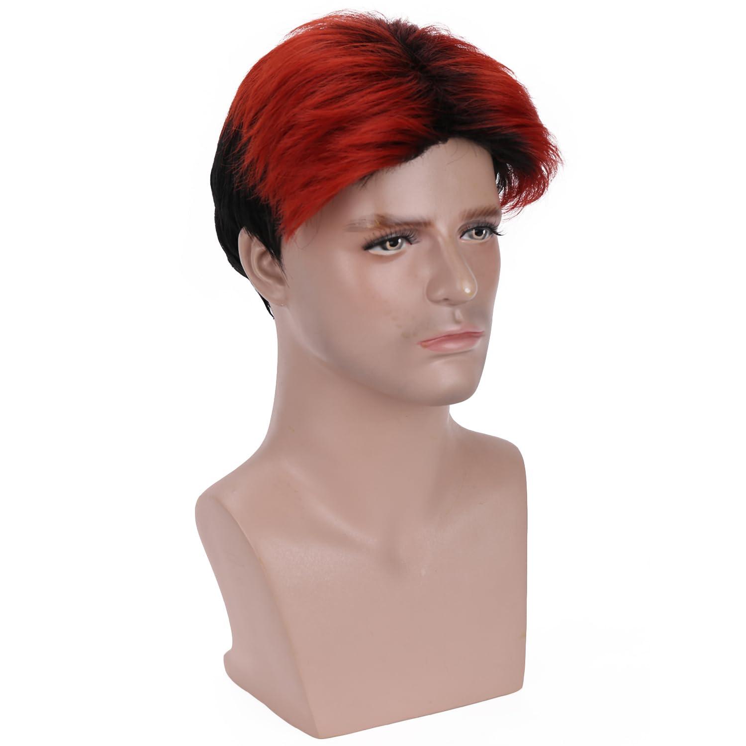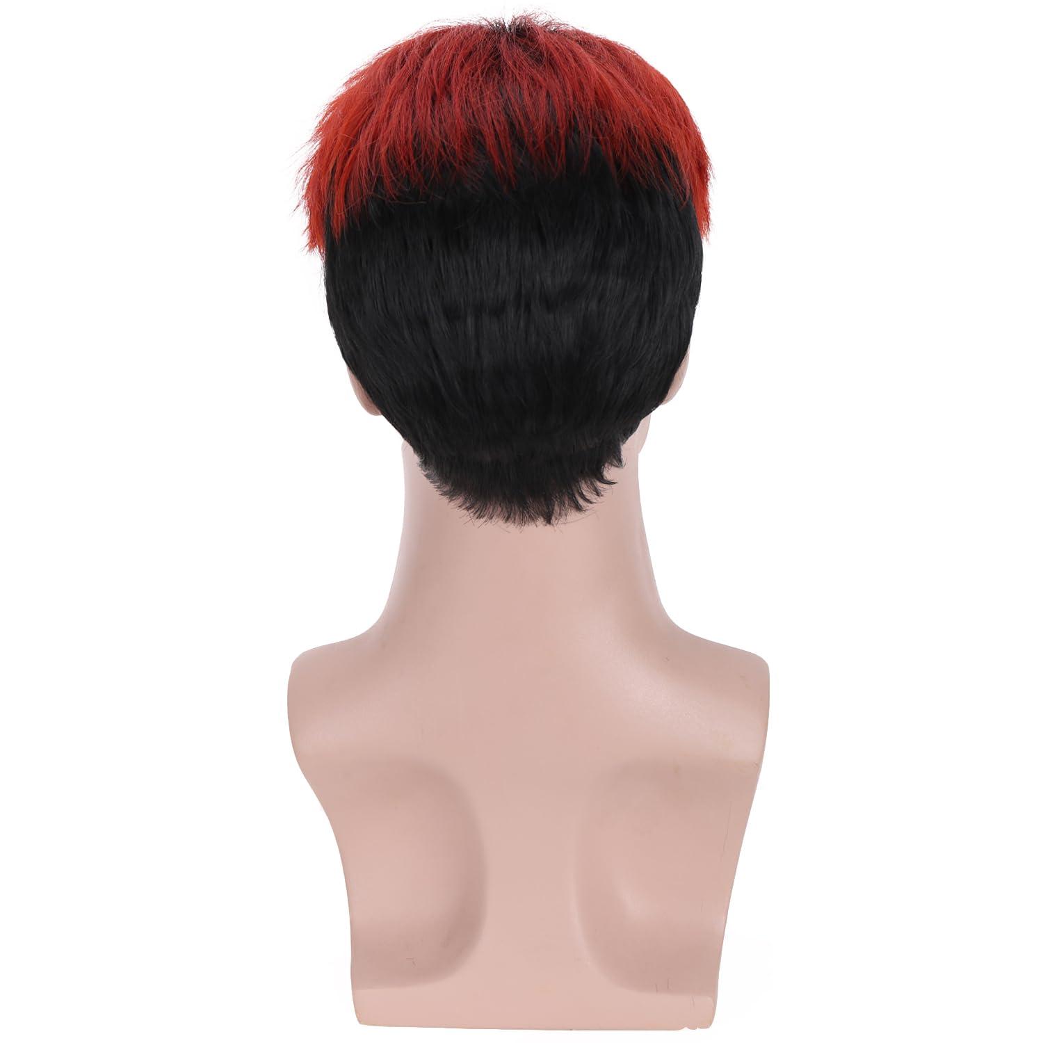 Kids Black Wig Boys Short Black Straight Wigs Children Side Part Wig Synthetic Cosplay Costume Halloween Daily Wigs(Black to Wine Red)